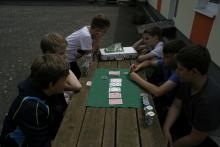 Heute haben wir nach dem Frühstück wie gewohnt unsere Zimmer aufgeräumt. Danach sind wir alle nach draußen gegangen und haben erst ein Gruppenspiel gespielt. Dann wurden wir in drei Gruppen eingeteilt. Die erste Gruppe waren die, die Fußball spielen wollten. Die zweite Gruppe waren die, die Volleyball spielen wollten. Die dritte Gruppe waren die, die Völkerball spielen wollten. Beim Fußball hat Team zwei gewonnen. Beim Volleyball das Zimmer eins. Beim Völkerball wurden drei Runden gespielt und keiner wusste, wer wann gewann. Dann haben wir 7. Teams gebildet und mussten 8 Stationen durchlaufen. Von allen Stationen wurden die Punkte der jeweiligen Teams aufgeschrieben. Nach einem leckerem Abendessen haben wir uns alle in einem Raum getroffen und Activity gespielt und da hat Team Team Jonas gewonnen, es werden aber gerade die ganzen Punkte von jedem Team zusammengezählt, einschließlich Activity. Das Ergebnis wissen wir noch nicht. Nach dem Spiel hatten wir noch alle eine Stunde Freizeitund mussten dann auf die Zimmer.