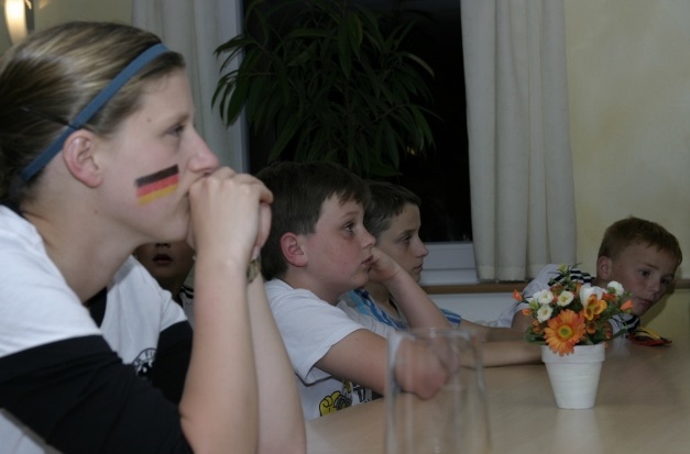 Morgens haben wir die Sieger von den Gruppenspielen gestern geehrt. Dann hat sich das Lager in zwei Gruppen aufgeteilt, die einen haben erst Gruppenspiele gemacht und durften nachher in die Turnhalle, die andere Gruppe ist erst in die Turnhalle gegangen und dann sind sie ins Schwimmbad gefahren. Abends gab es Hamburger oder Hot-Dog zum essen (war lecker). Um 22:00 Uhr haben wir dann alle zusammen Fußball geguckt. Alle haben gefeiert, auch die Betreuer. Brasilien wurde dann mit 1:7 zerstört!