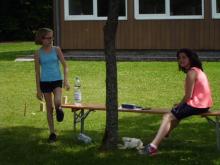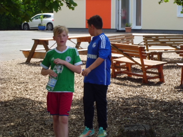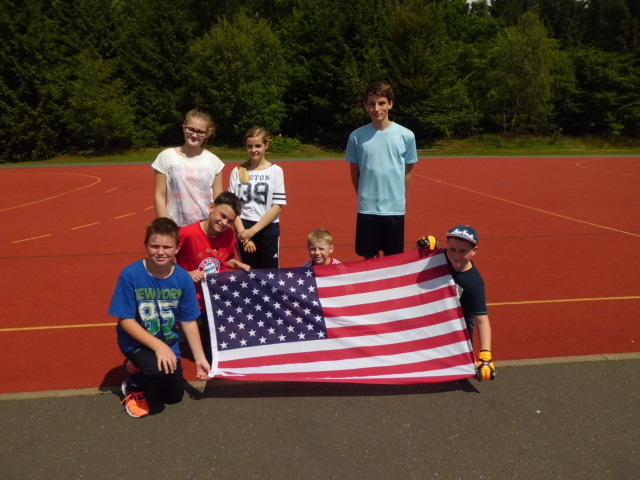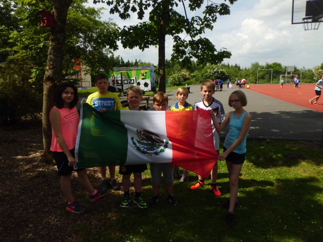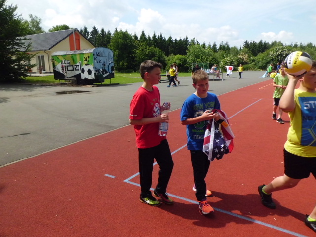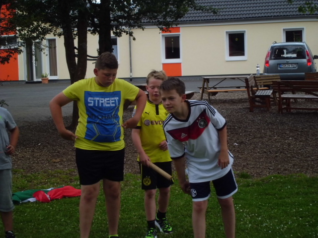 Heute haben wir ein Sporttunier veranstaltet. Es gab 8 Gruppen, die in verschiedenen Sportarten: Volleyball, Fußball, Völkerball und Wickingerschach gegeneinander antreten musten. Die Gruppen wurden in Länder unterteilt: Brasilien, Japan, Portugal, Spanien, Australien, Argentinien, USA und Mexiko. Es war sehr warm, aber trotzdem hatten alle Spaß. Zwischen den Spielen hatten wir manchmal auch Freizeit. Nach dem Abendessen haben wir uns in Gruppen eingeteilt und Activity gespielt. Dabei mussten wir die Begriffe erklären, zeichnen oder pantomimisch darstellen.