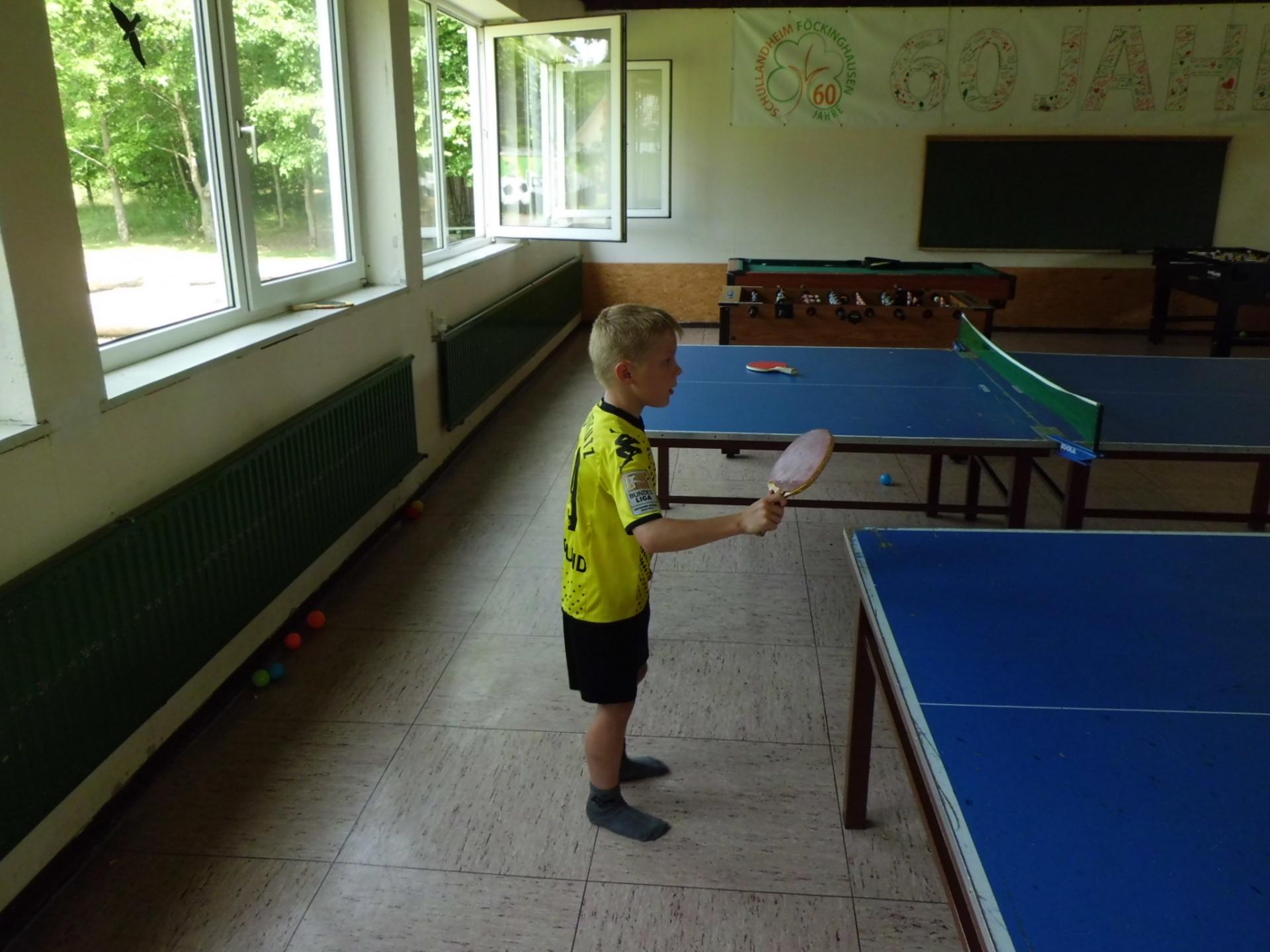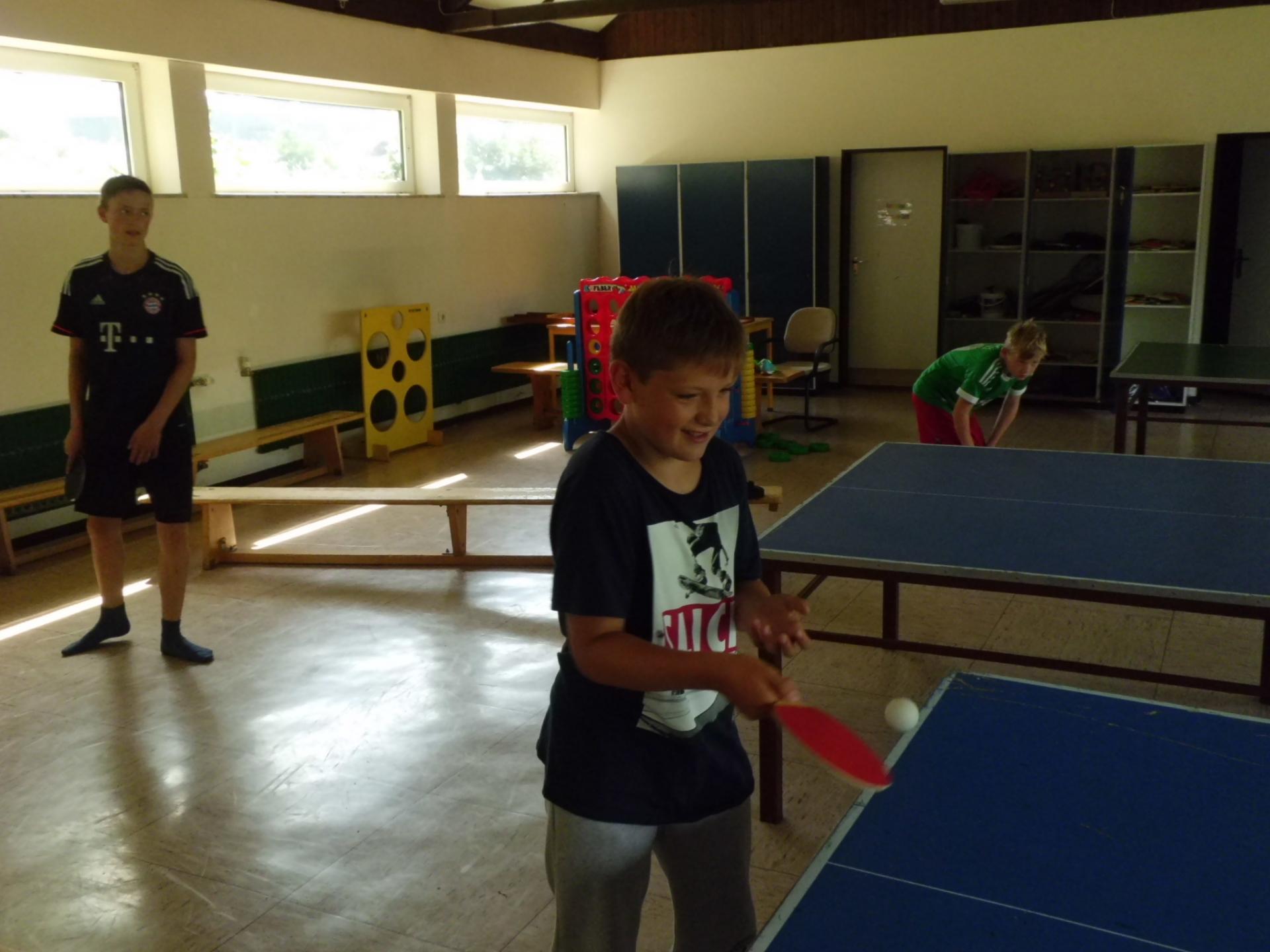 Heute sind wir im Schullandheim geblieben. Zuerst haben wir lecker gefrühstückt. Danach sollten wir uns um 10:00 Uhr treffen. Alle Tischdienstgruppen haben gegen die anderen gespielt. Es war Flunky-Ball. Nach Flunky-Ball haben die Betreuer Spiele aufgebaut. Wir durften uns dann Spiele aussuchen wie Tischtennis, Kubb, Vier gewinnt, Phase 10, Lieder singen, Wer bin ich?, Poker und Tip Kick. Dann sollten wir ins Zimmer gehen. Danach haben wir alle eine Wasserschlacht gemacht und waren unter dem Rasensprenger. Es gab danach auch noch Kuchen und Melone. Am Abendprogramm stand dann „Schlag die Betreuer“ an. Es gab die Spiele Flunky-Ball. Da haben die Betreuer gewonnen. Die Kinder haben danach noch alleine gespielt. Zum Schluss haben wir dann noch „Ich einfach unverbesserlich“ geschaut.