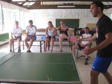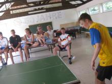 Nach dem Frühstück war tägliche Zimmer aufräumen angesagt. Nachher haben wir im Aufendhalsraum organisatorische Dinge geklärt und die Betreuer haben verschieden Spiele vorgeschlagen (Fußball, Wer bin ich, 4 gewinnt etc.), die wir anschließend gespielt haben. Nach dem Lunchpaket konnten wir T-Shirts bzw. Taschen bemalt, dabei gab es Donuts und Muffins. Später haben wir Tischtennis bei „Schlag die Betreuer“ gespielt. Dabei haben die Betreuer leider gewonnen. Der Zwischenstand ist dem nach 8:2 für die Betreuer. Nach dem Spiel hat es heftig angefangen zu gewitern. Deshalb wurde das Fußballspiel der Betreuer abgebrochen. Zum Abendessen gab es Hähnchen Fleisch, Reis, Brokoli mit einer Sauce. Beim Abend Programmen wir das 5. Spiel von Schlag die Betreuer gespielt. Anschließend 1, 2 oder 3 über die Betreuer gespielt. Insgesamt hatten wir einen schönen aber heissen Tag.