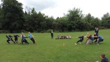 Nach dem Frühstück sind die Älteren aus dem Ferienlager mit den Bullis zu den Karl-May-Festspielen nach Elspe gefahren, wo es verschiedene Unterhaltungsshows, wie z.B eine Stuntshow gab. Doch der Hauptbestanteil des Festivals war das Stück " Im Tal des Todes" von Karl May, welches auf der größten Freilichtbühne Europas aufgeführt wurde. Der Rest der Gruppe hat am Vormittag auf dem Gelände des Schullandheims Highlandgames gespielt, wo man beispielsweise Gummistiefel möglichst weit werfen muss. Am Nachmittag hat der Rest der Gruppe "Menschenmemory" gespielt, wobei sich immer Paare finden müssen, die eine bestimmte Bewegungen machen und dann von den " Spielern" gefunden werden müssen. Zum Abendessen gab es Wraps, die man selber belegen konnte und im Anschluss daran haben wir einen Animationsfilm auf einer Leinwand mit Beamer geschaut. Die die den Film nicht sehen wollten, konnten sich draußen beschäftigen. Später waren alle gespannt, was wir am nächsten Tag unternehmen werden.