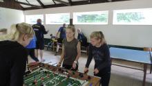 Die Gerichtsverhandlung war überstanden und alle kamen gut gelaunt zum Frühstück. Doch bei diesem Frühstück gab es auch eine schlechte Nachricht zu verkünden!!! Denn im heutigen Tagesverlauf sollte die Betreuerin Nadine abreisen. So sollte dieser Tag natürlich noch einmal besonders gut und spaßig verlaufen. Da das Wetter an diesem Tag nicht sonderlich gut werden sollte, standen an diesem Tag Spiel und Spaß erst einmal für den Innenraum auf dem Programm, wie beispielsweise Dart und Tischtennis. Man konnte aber selbst kreativ werden. Dennoch kam nach einiger Zeit auch einmal die Sonne heraus, welche auch für den Rest des Tages bleiben sollte. Aus diesem Grund hatten die Kinder gegen Nachmittag die Chance entweder Kub(Wikingerschach), Fußball oder Völkerball zu spielen.